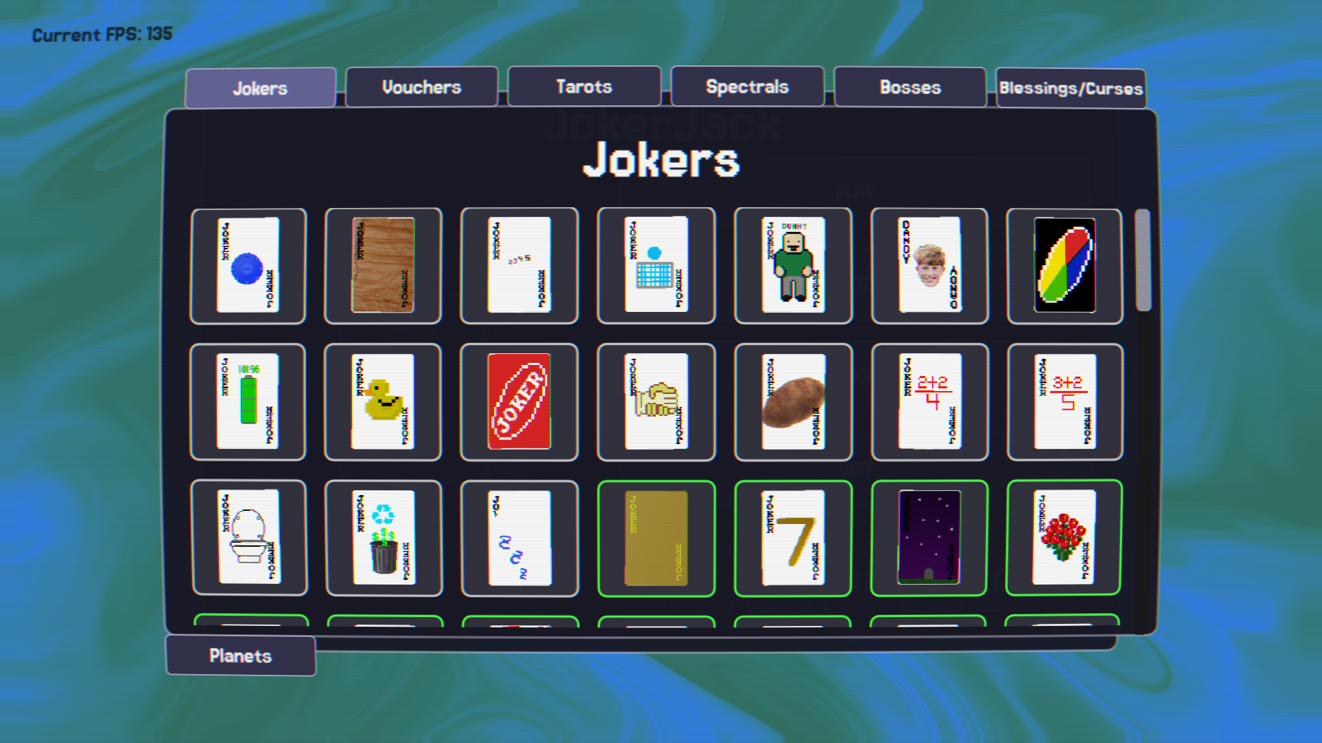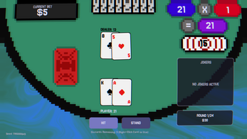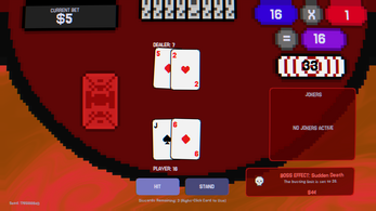 JokerJack is a Balatro-inspired rouge-like Blackjack game. The game features jokers, multipliers, tarots, vouchers, stakes, spectral cards, planet cards, and unlockable decks.
